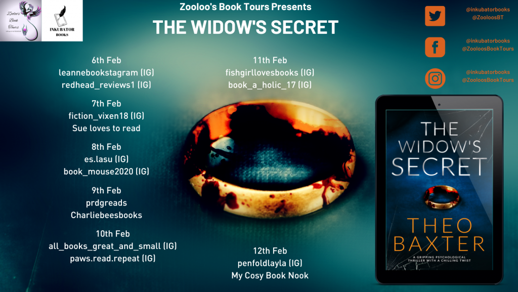 The tour for The Widow’s Secret by Theo Baxter has now come to an end. You can view everyone’s full post via the page but here are some highlights